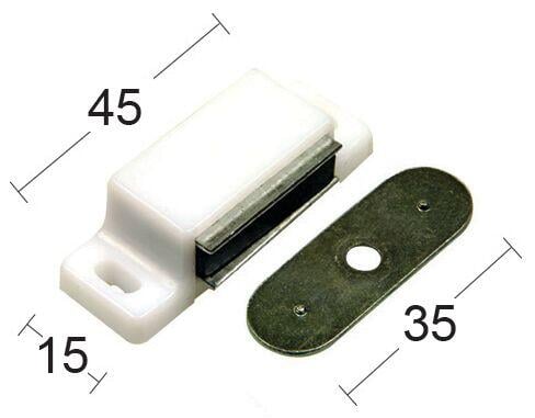Magnetlås med magnethus i plast. Drakraft: 2 kg. Leveres inkludert skruer.