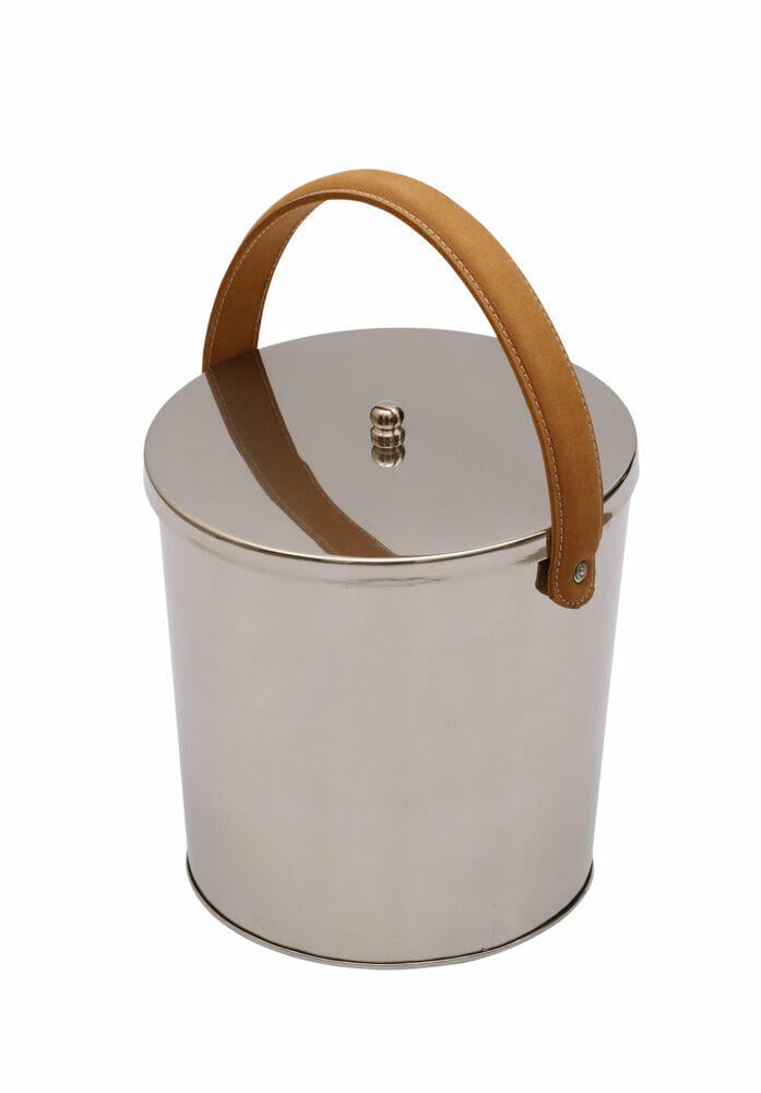 Grom askebøtte med skinnhåndtak og lokk for aske.