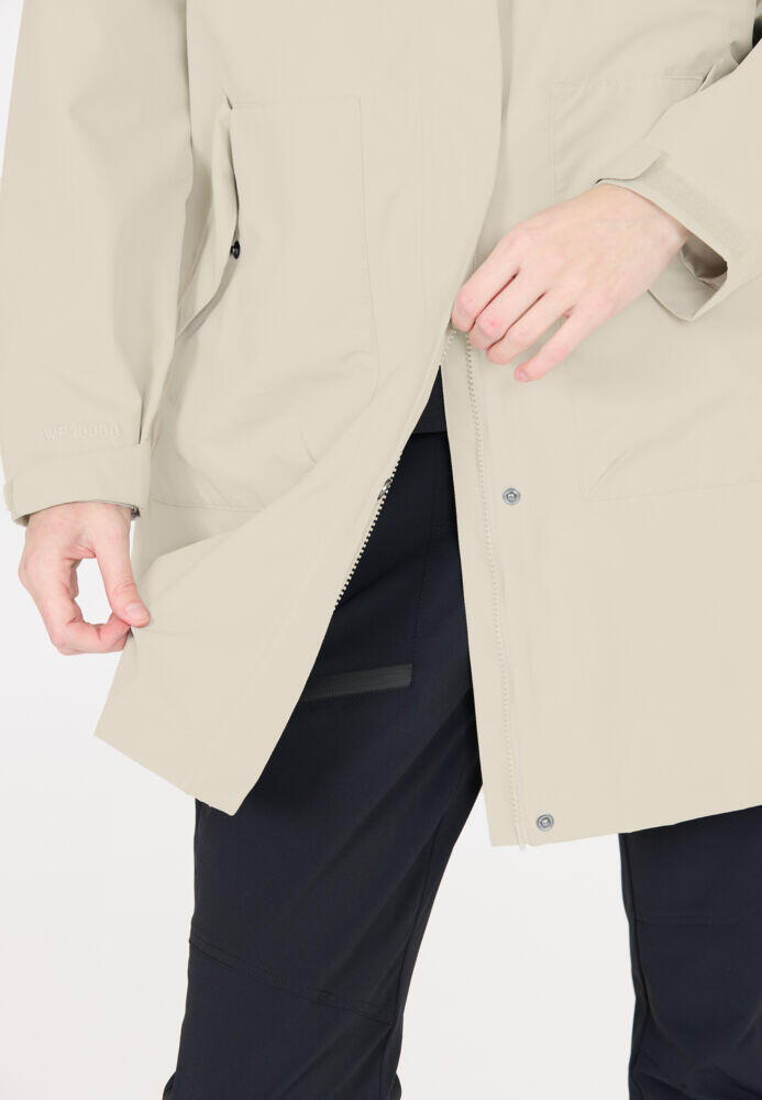 Denne fine og klassiske parkasen er i en rett modell med lengde til midt på låret. Den har et slitesterkt yttermateriale med en vannsøyle på 10 000 mm og tapede sømmer for optimal vanntetthet. Jakken er i tillegg vindtett og har gode pusteegenskaper gjør at parkasen er god å ha på seg gjennom en hel dag. Med en høy krage og justerbar, avtakbar hette gir jakken ekstra god komfort og ekstra beskyttelse mot vær og vind. For en optimal passform og komfort har jakken borrelåsjustering nederst på ermene og I tillegg er jakken utstyrt med 2-veis glidelås som beskyttes med stormklaff i front, glidelåslomme på brystet og klafflommer i sidene som kan lukkes med trykknapp.