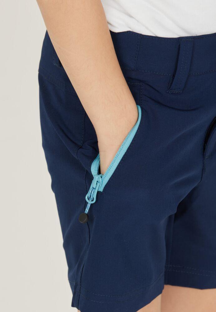 Denne shortsen er laget i et lett og fleksibelt materiale som puster godt og føles komfortabel på under aktivitet. Den elastiske linningen har beltestropper og shortsen lukkes med glidelås og knappelukking i front. Praktiske detaljer som sidelommer og en praktisk glidelåslomme på høyre lår.