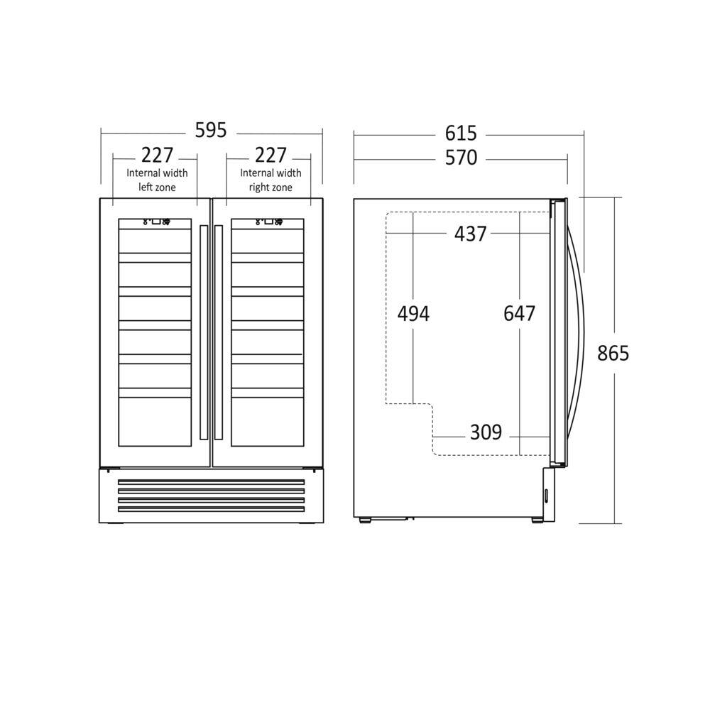 SV 91 X har to kjølesoner som sikrer at du alltid kan ha temperert rødvin i den ene sonen og avkjølt hvitvin i den andre sonen. Det er raskt og enkelt å stille inn individuelle temperaturer for de to temperatursonene, ettersom hver sone har et enkelt kontrollpanel. For eksempel kan du stille inn den ene sonen til 10 grader og den andre sonen til 17 grader. De to sonene er uavhengige av hverandre.
