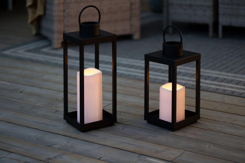 Svart lykt med integrert LED kubbelys i hvit farge.
