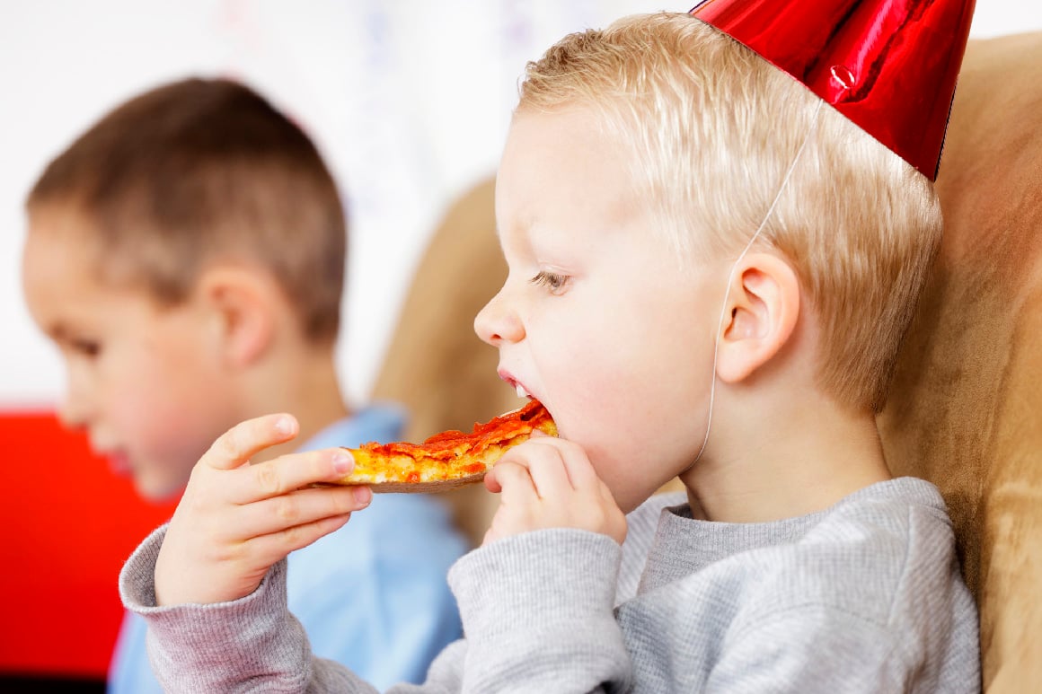 NED PÅ HØYKANT: Serverer du pizza i barnebursdag, har du sannsynligvis en veldig fornøyd gjeng! FOTO: Istock