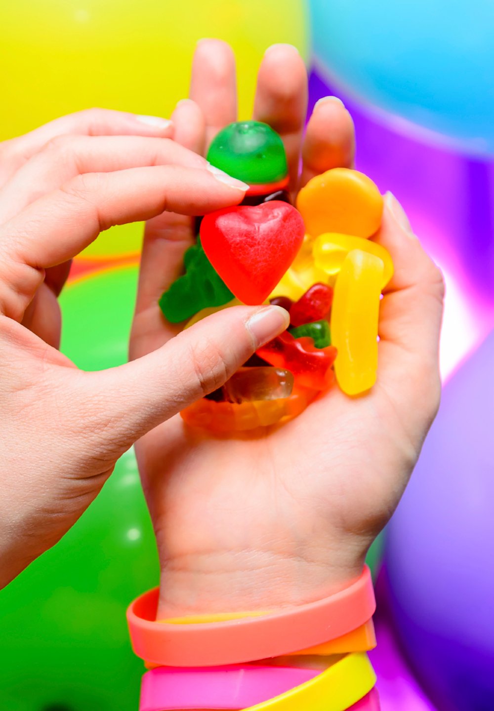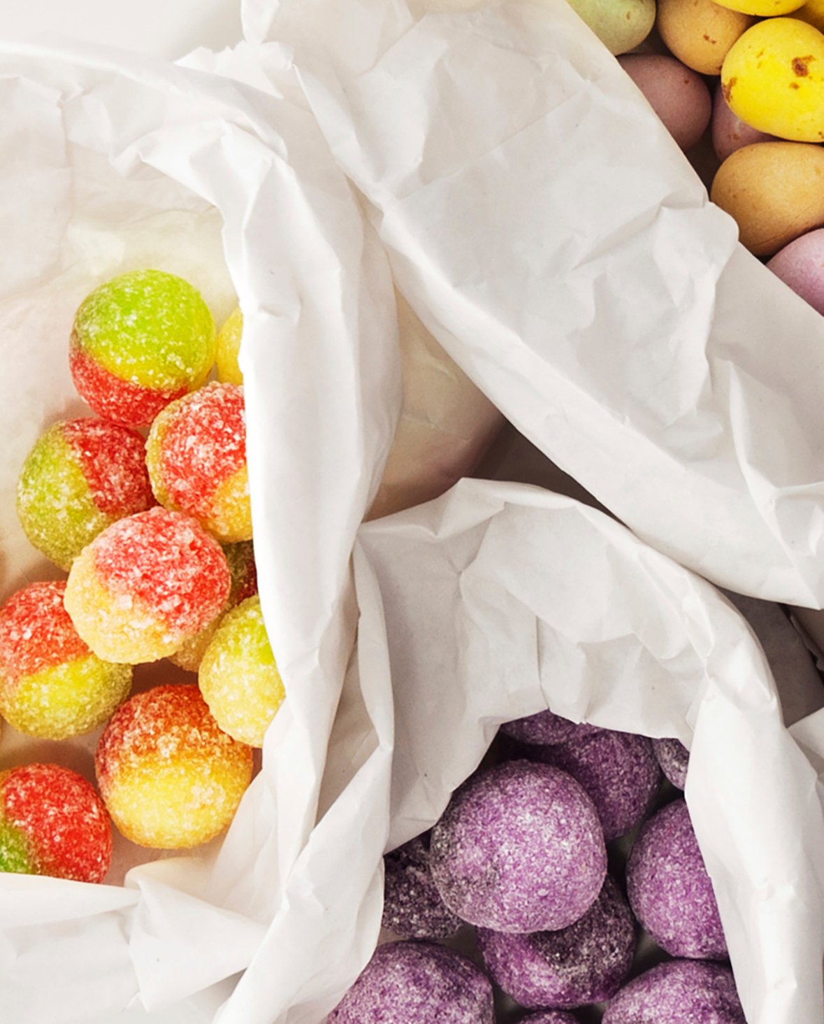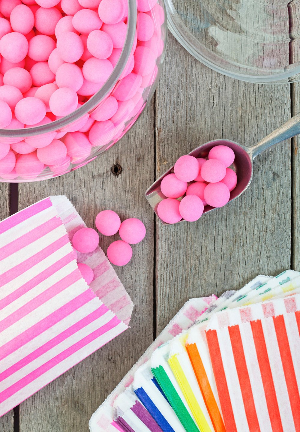 Pynt, mat og kake hører bursdager til, og for mange gjør også godteposer det.