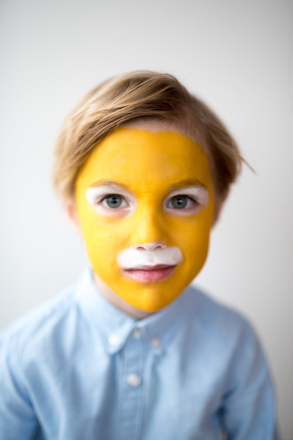 Den som skal sminkes må sitte godt. Bruk gjerne en stol med høyt sete - det blir da lettere for den som påfører malingen.