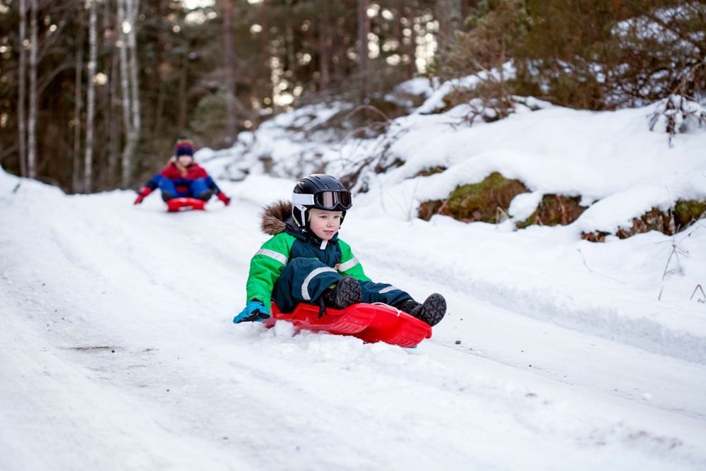 Om vinteren er selvfølgelig snø og is viktige ressurser. Ake- eller skøytebursdag er enkelt, men sjekk at alle har det utstyret de trenger, så bursdagen blir vellykket for alle. Man kan også grave ut snøhuler, eller hva med å bygge opp den plassen der man skal sette seg ned for å spise? Der trengs det benker, bord og lykter, og alle får brukt mye energi før pølser og kaker skal inntas.