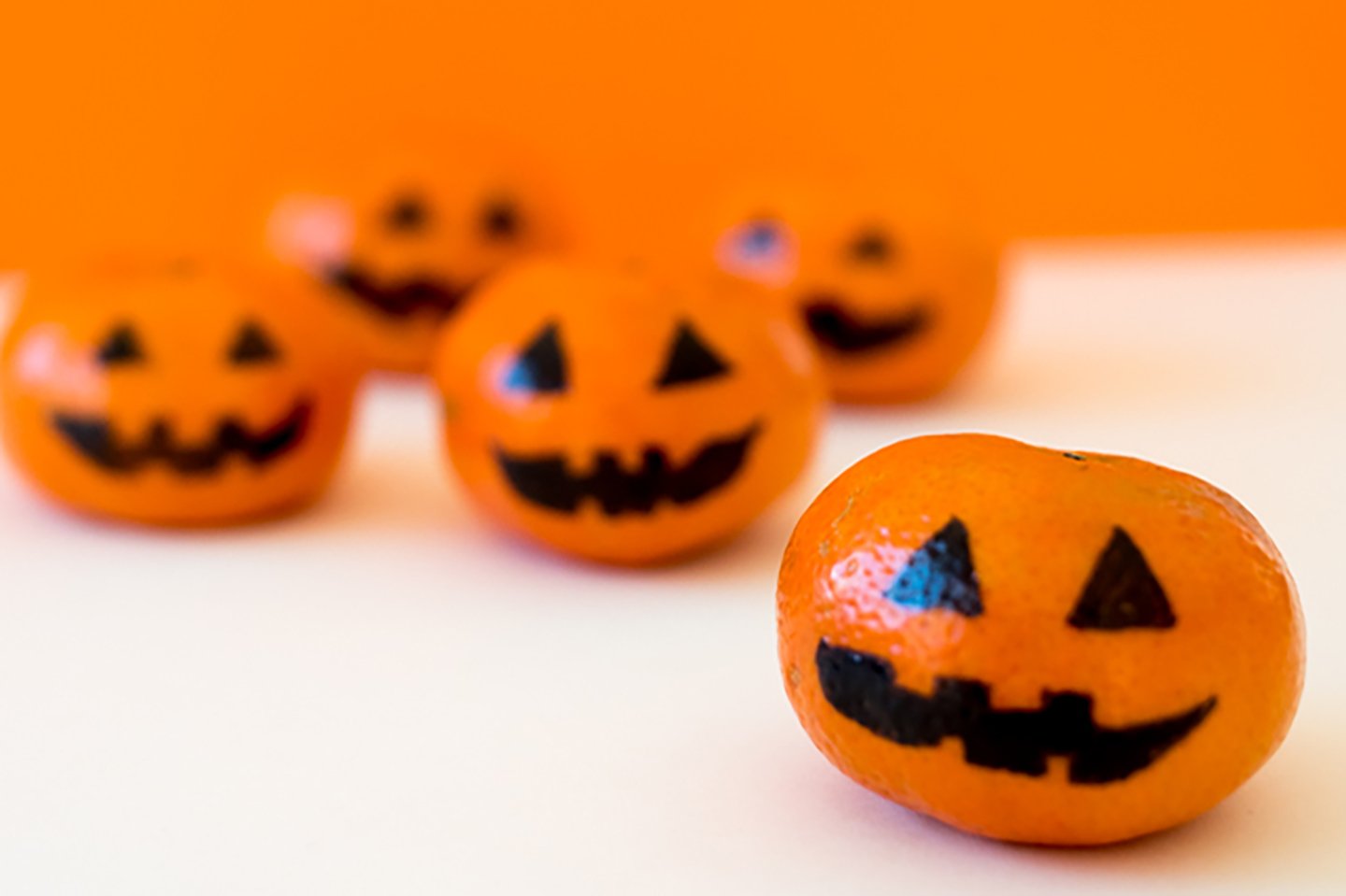 Å hule ut et helt gresskar til Halloween kan være en krevende jobb. Har du klementiner og en markeringstusj kan du lage mange små minigresskar i en fei.