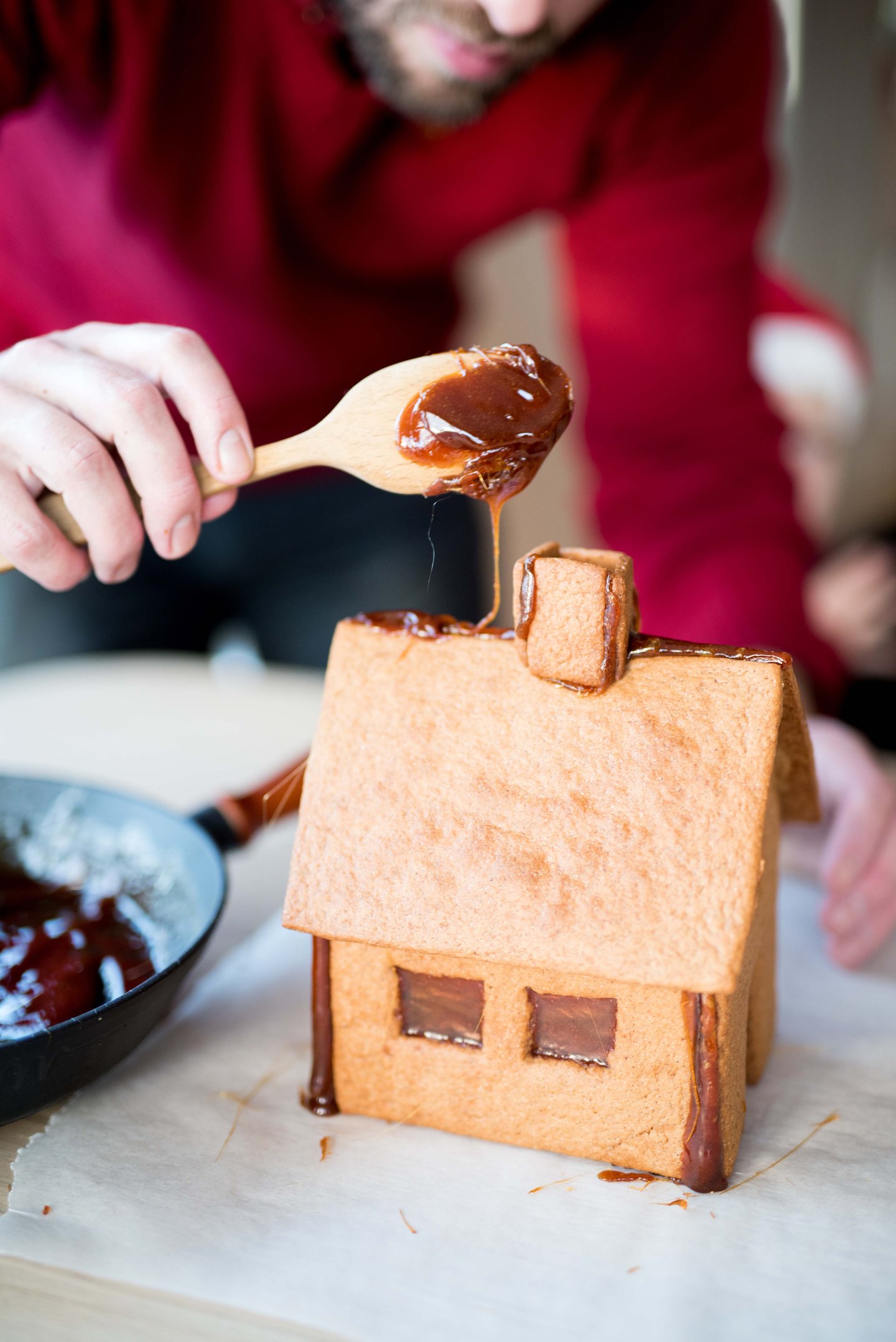Det finnes flere måter å montere sammen pepperkakehus på. Bruker du knekk som lim, blir huset svært solid.