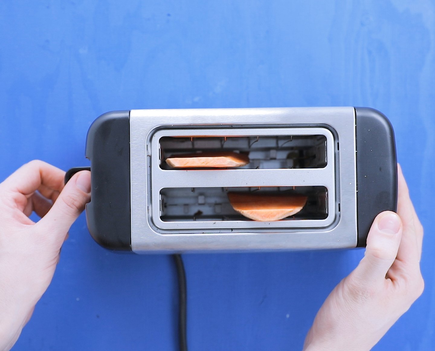 Å lage søtpotet-toast i brødristeren er veldig enkelt. Start med å kutte av toppen og bunnen av søtpoteten. Kutt den deretter opp i relativt tynne skiver (ca. en halv cm). Disse skal så puttes i brødristeren i 2–4 omganger, avhengig av hvor sterk brødrister du har. Om brødristeren din har varmeinnstillinger, anbefaler vi at denne står på en av de varmeste. Søtpoteten er ferdig når den er litt sprø på utsiden og myk inni. Toppes med valgfritt pålegg.