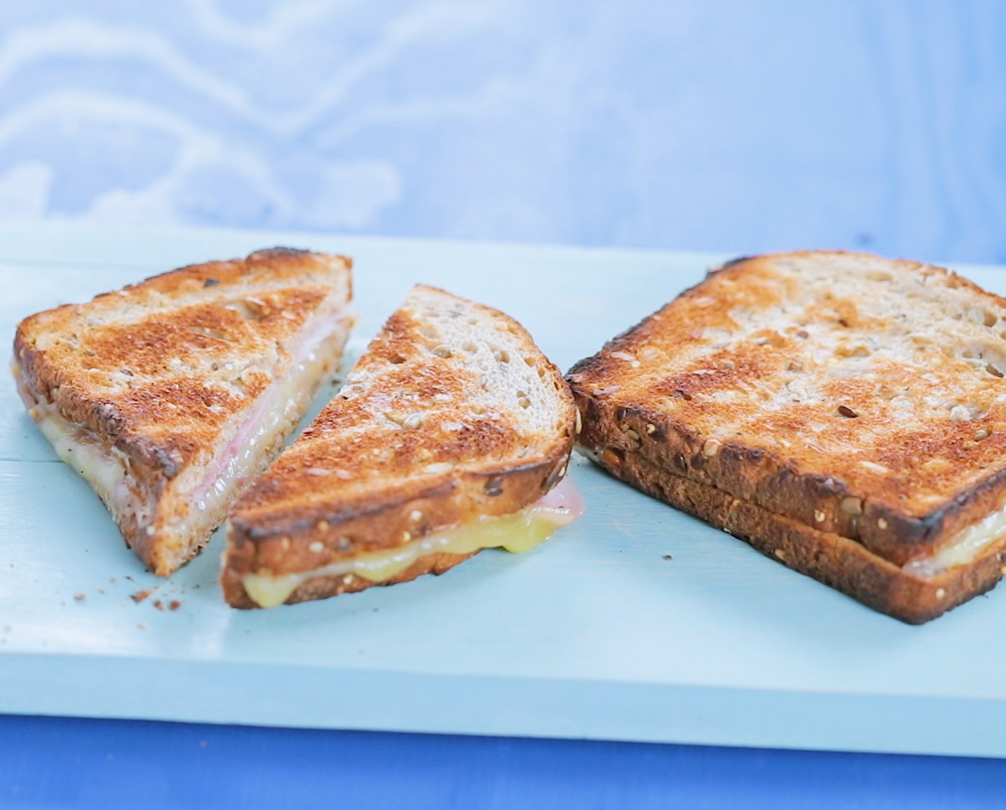 Varm den på middels varme i en eller to omganger, til osten er smeltet og brødet er gyllent og sprøtt. Dette mellommåltidet blir fort en klassiker!