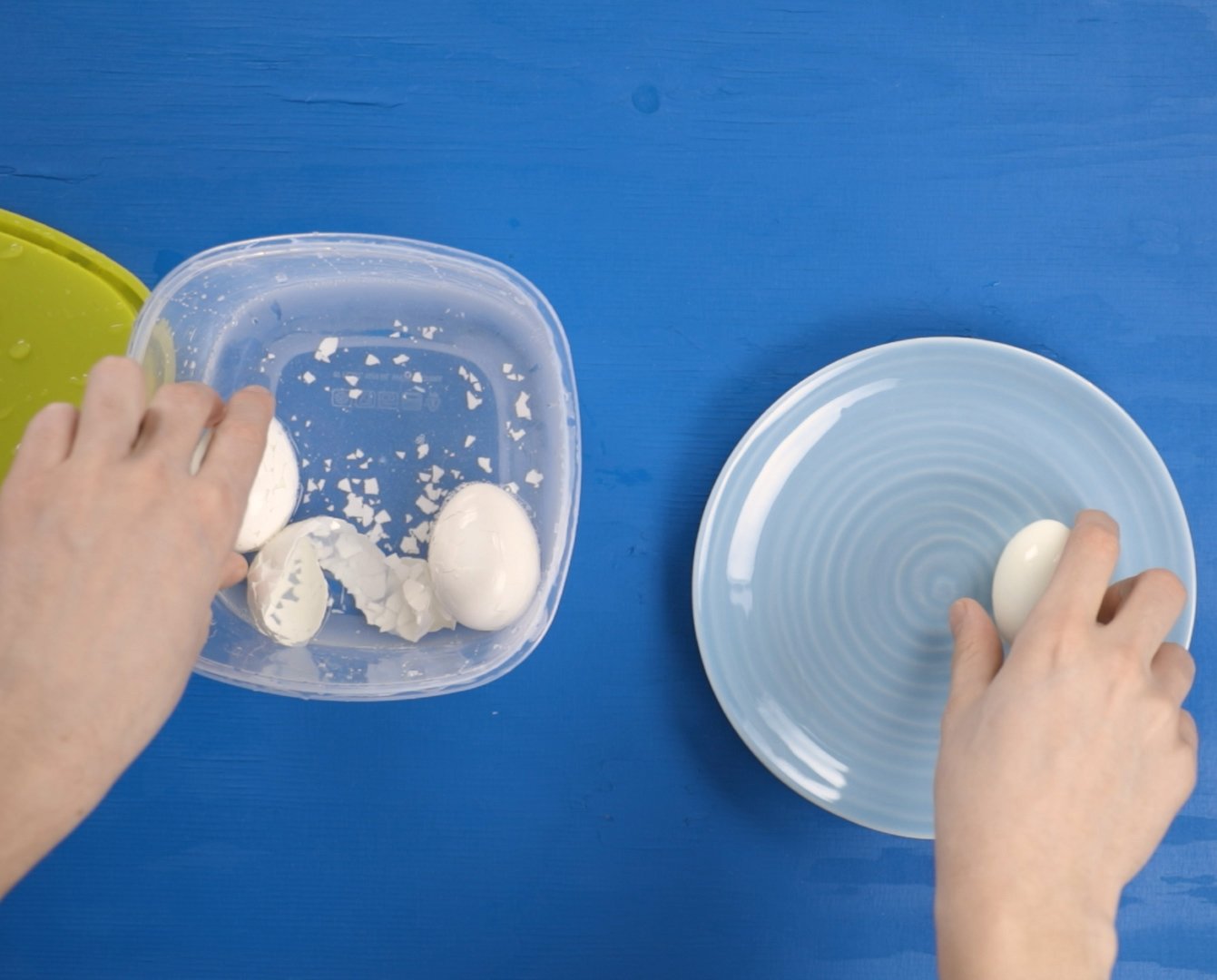 Men det finnes faktisk en enkel løsning. Enten du skal skrelle ett eller flere egg, er du nemlig bare en plastboks, litt kaldt vann og 10–15 sekunders risting unna perfekt skrelte egg. Alt du trenger å gjøre er å putte de kokte eggene i en plastboks med litt kaldt vann, stenge godt igjen med et lokk og riste løs. Rist boksen i 10–15 sekunder, og du har perfekt skrelte egg, klare til å nytes.