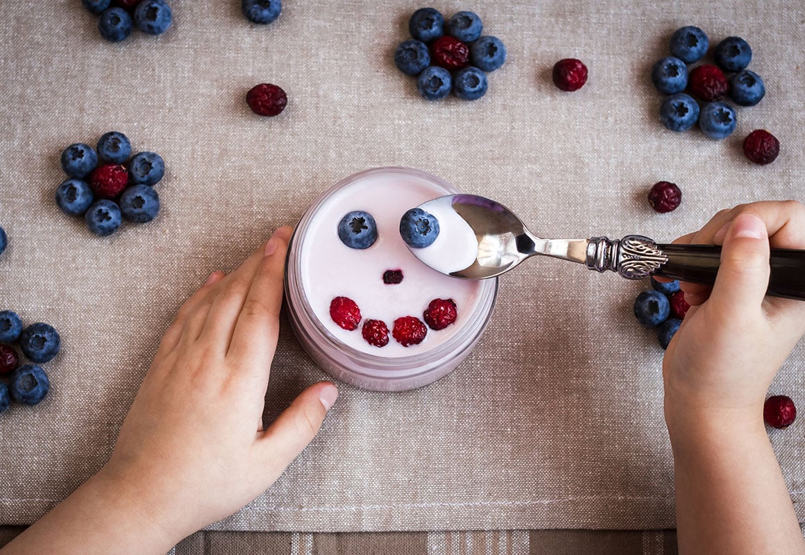 Er barnet ditt glad i yoghurt og kesam, kan du enkelt lage en sunn avslutning på lunsjen ved å blande dette med friske eller frosne bær.