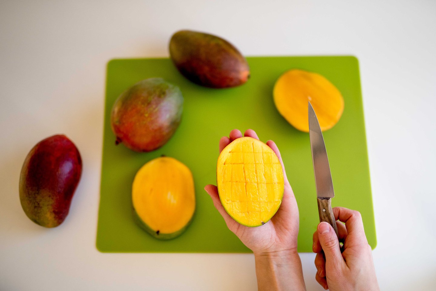 Blir det klin og griseri når du skal dele mango? Fortvil ikke! Her viser vi deg tre metoder som holder kjøkkenbenken ren.