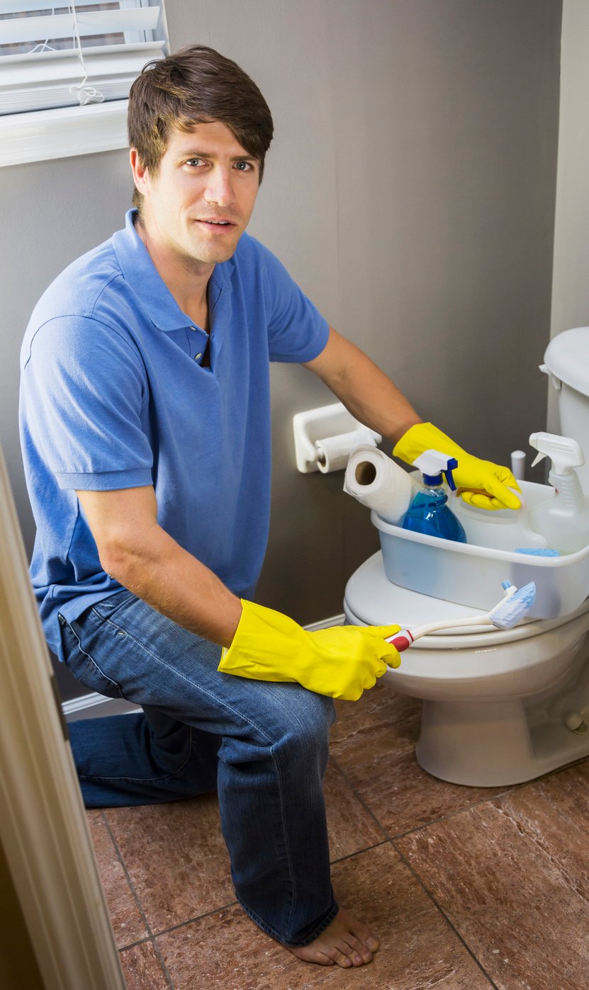 Bruk en toalettbørste til å børste godt rundt med nedi doen, før skylling.