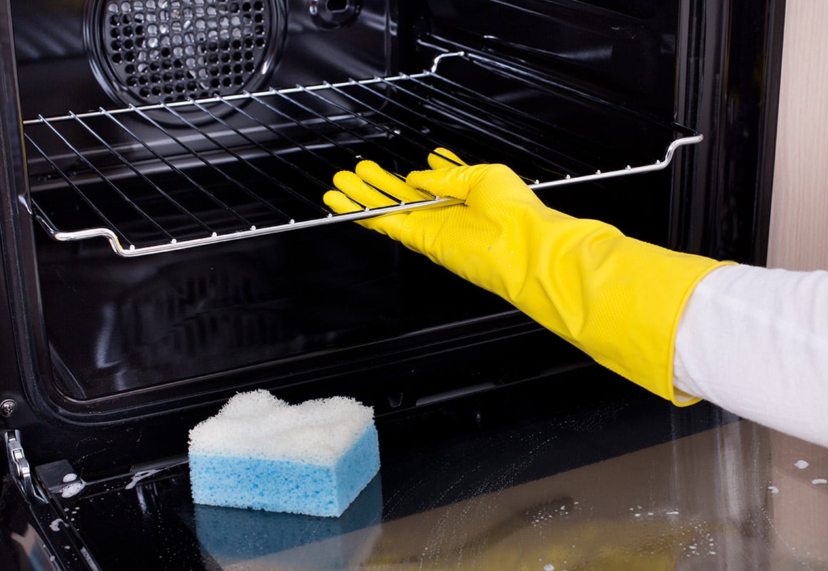 En blanding av salt, eddik og natron kan få selv de fastbrente flekkene i ovnen på gli. Gjør blandingen tyktflytende og la den virke på flekkene noen minutter før du går løs på dem. Bruk et skraperedskap av hard gummi eller tre, så du ikke skraper opp belegningen på innsiden av ovnen.