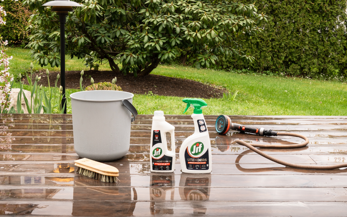 Uteplassen har sannsynligvis stått urørt en stund. Derfor er det perfekt å starte vårrengjøringen her!