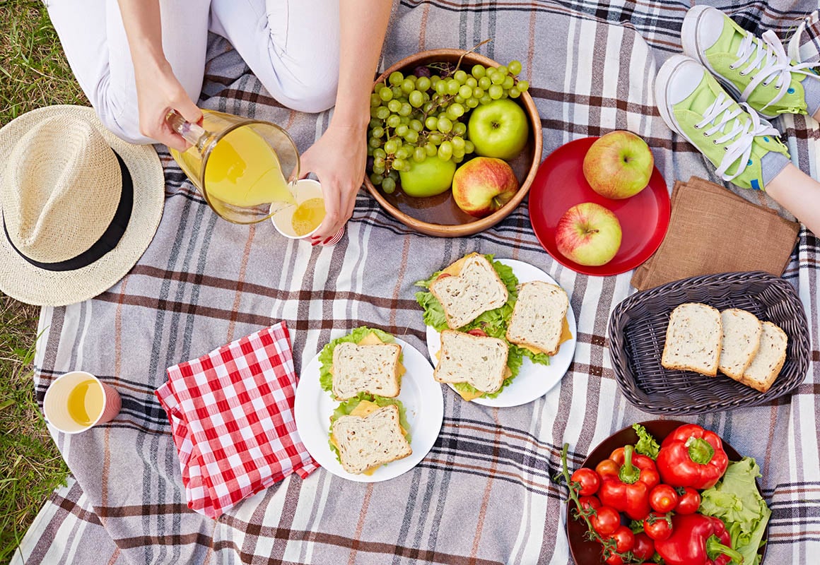 Selvsagt er det maten som spiller hovedrollen. Maten bør smake godt kald og være enkel å spise, så fingermat og ferdig oppskjærte, porsjonspakkede retter er perfekte. Du kan for eksempel gå for godt brød, frisk salat, fristende frukt og tradisjonelle piknikretter som pai og skotske egg.