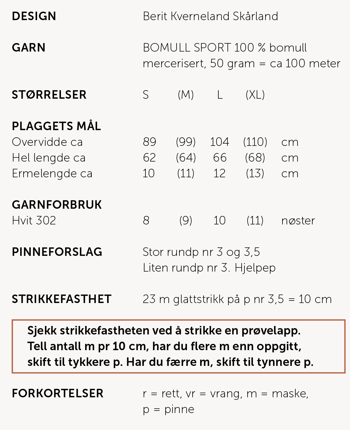 Rundt: Strikk vekselvis 1 omgang r og 1 omgang vr.