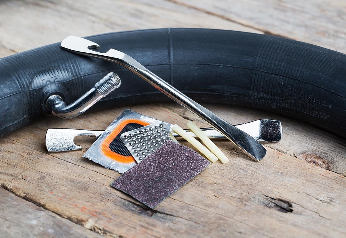 Skal du ut på en lengre sykkeltur, bør du uansett sørge for å ha med deg utstyr til å reparere sykkelen om uhellet er ute. I dag er det mer vanlig å ha med seg ekstra slange, pumpe og dekkspaker enn lappesaker når man drar på langtur, ifølge Kolnes.