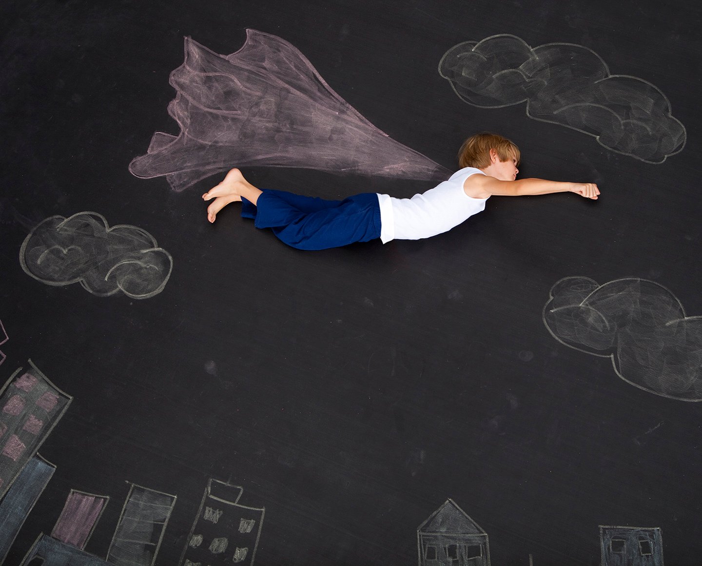 Har du noen gang tenkt på en trampoline som et stort lerret som bare venter på at små kunstnere skal få ut utfolde seg? Trampolinen er nemlig super å tegne på, bare bruk kritt som kan vaskes vekk, og la de små Picassoene slippe seg løs.