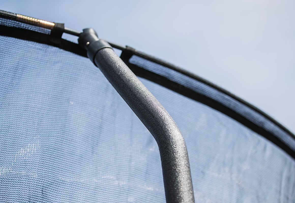 Har du ikke mulighet til å oppbevare hele trampolinen innendørs, kan du ta ned sikkerhetsnettet og hoppeduken, og la bare rammen stå ute.