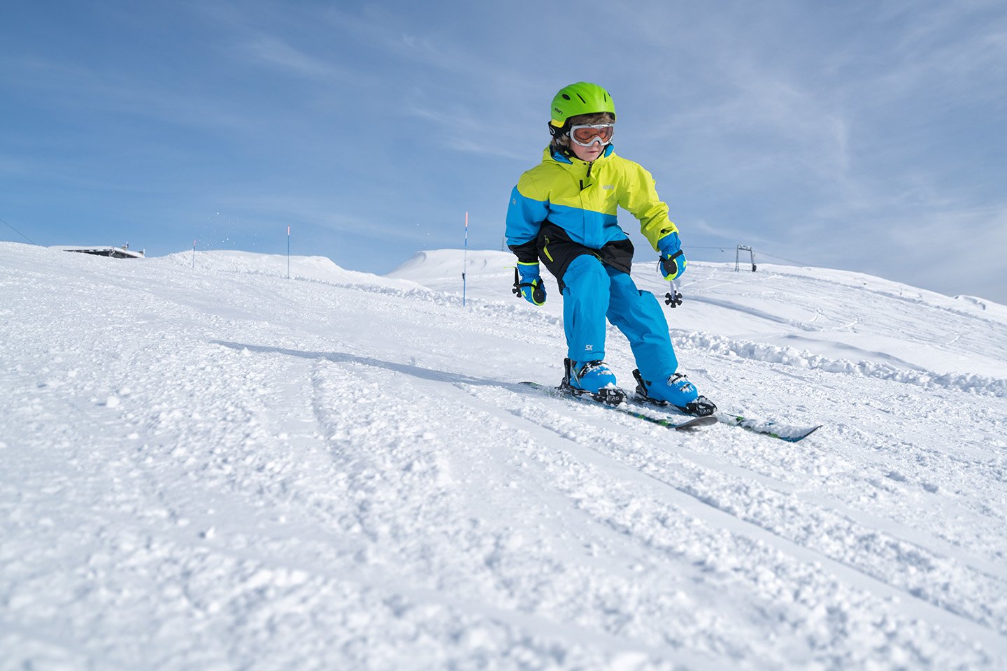– Hjelm er selvsagt viktig å bruke for å beskytte barnas hoder. Den er ofte så godt vattert at du ikke trenger å bruke lue. Husk også at slalåmbriller er bra, både fordi de beskytter mot vær og vind, men også fordi de som oftest er farget, noe som gjør at det er lettere å se kontraster i flatt lys, sier Skiri.