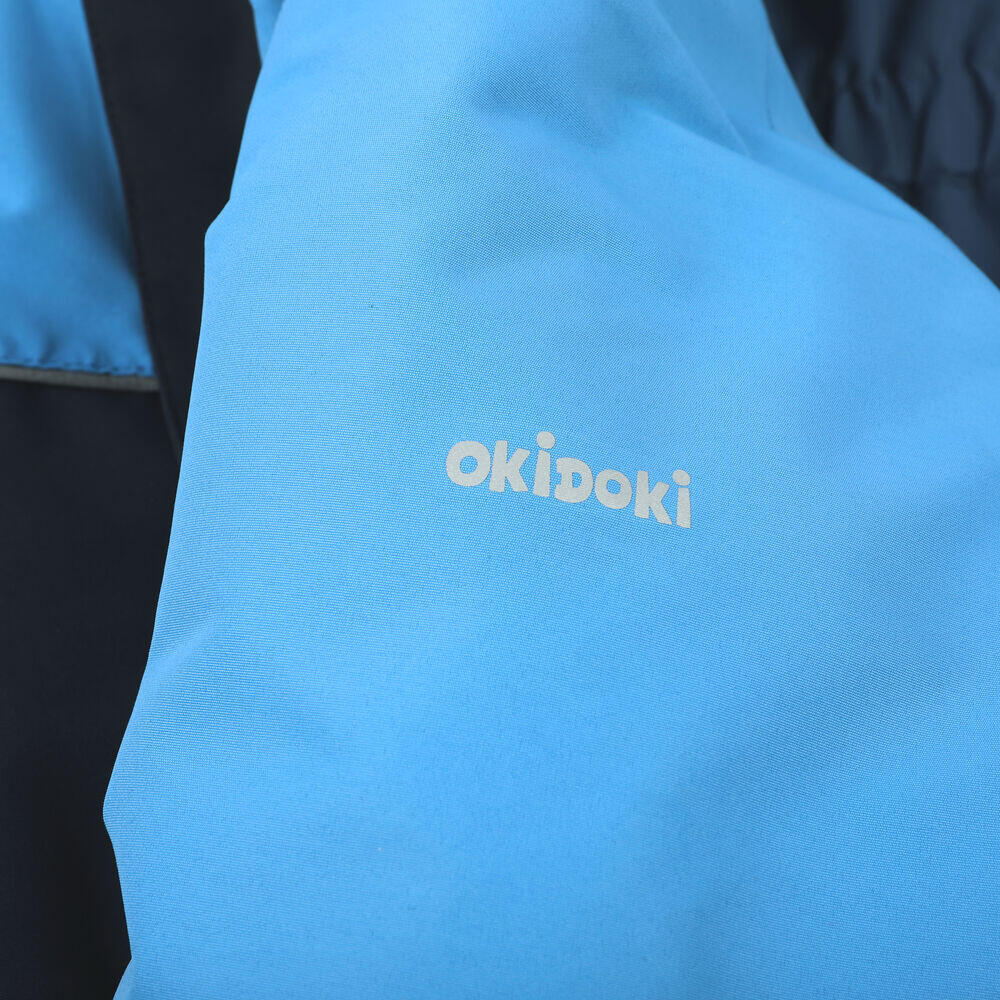 Play er en varm og behagelig vinterdress i tofarget design fra Okidoki. Med et vanntett, vindtett og pustende ytterstoff med 10 000 mm vannsøyle og tapede sømmer, varmt fôr, avtakbar hette og elastisk linning, gir vinterdressen god værbeskyttelse og ekstra komfort på de kalde og våte vinterdagene.