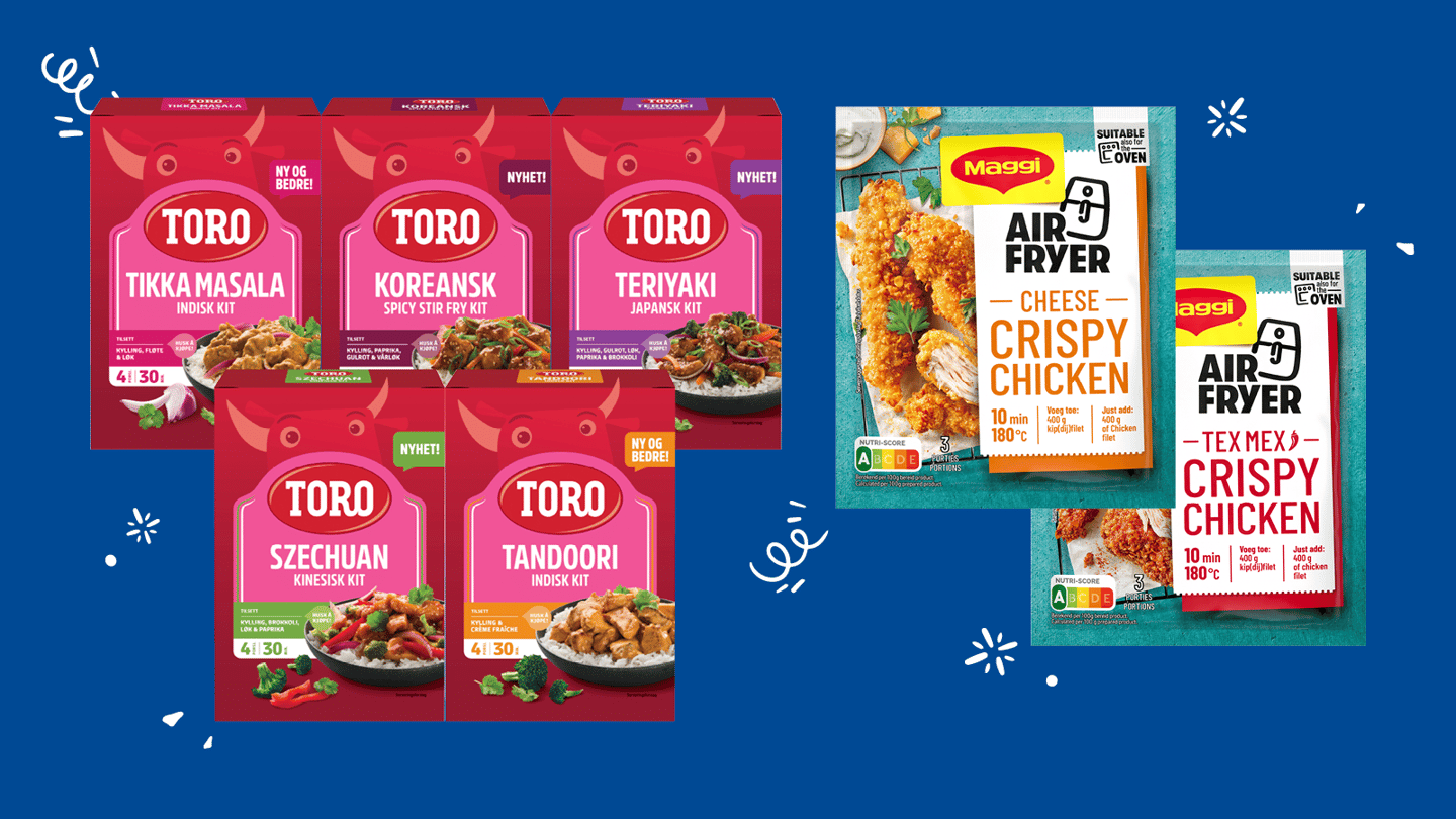 Toro relanserer også sine bestselgende middagskits Szechuan, Tikka Masala og Koreansk Stir Fry, og lanserer i tillegg nyheten Teriyaki med digge, japanske smaker. Airfryer er blitt fast inventar på mange kjøkken, og Maggis nye krydderblandinger med smak av Tex-Mex og Crispy Cheese passer perfekt når du vil gi kyllingmiddagen litt ekstra punch.