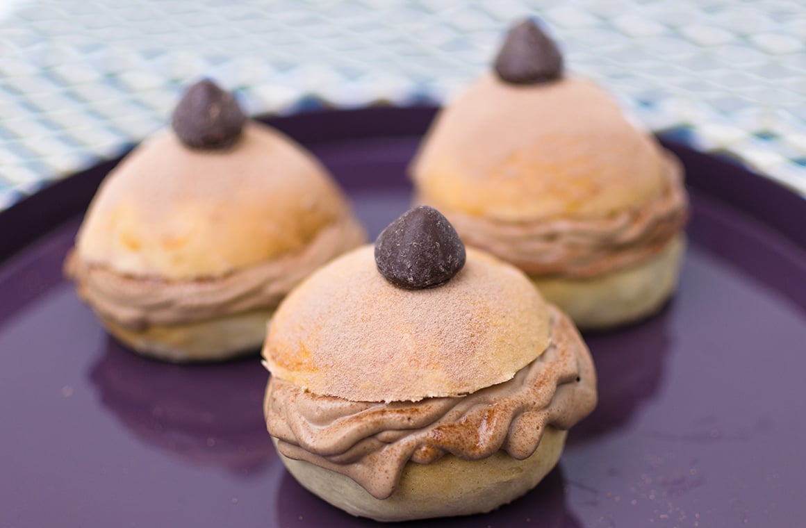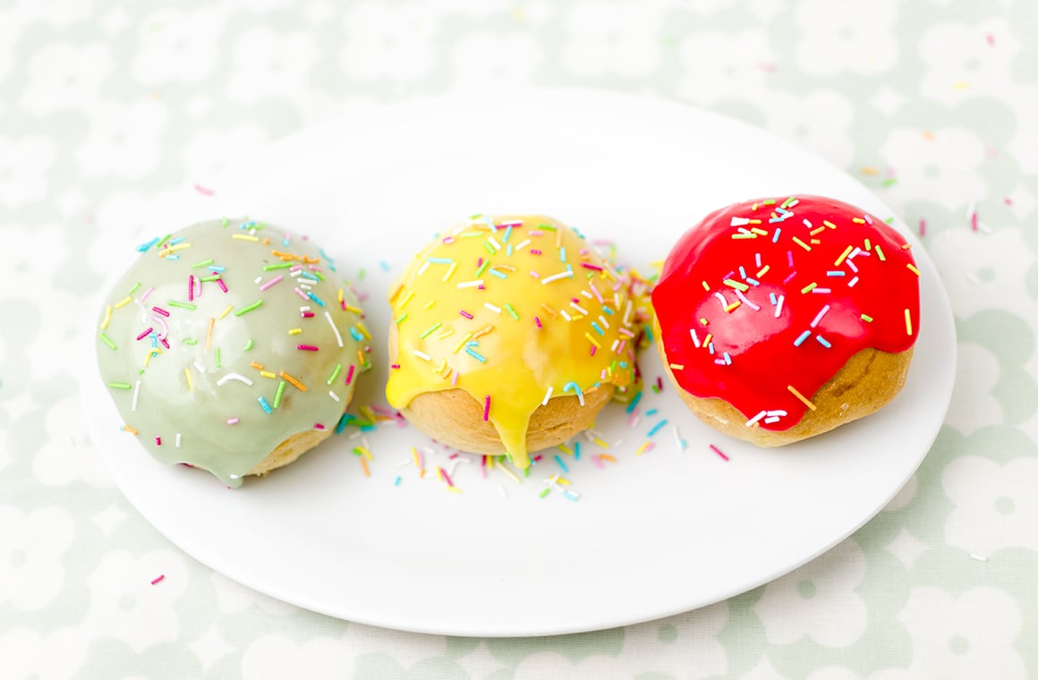 4. Fastelavnsboller med farget melis og innbakt vaniljekrem