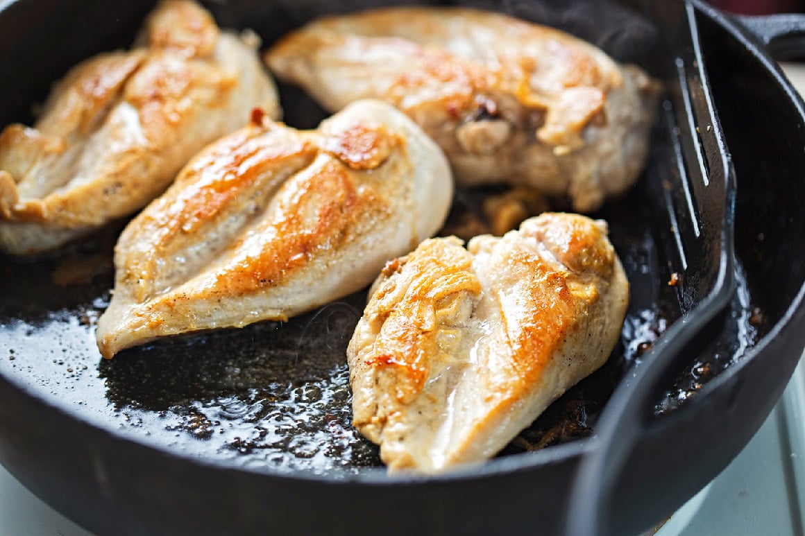 På grunn av antibiotikaresistente bakterier, skal kyllingkjøtt alltid gjennomstekes. Det må holde en kjernetemperatur på 72 grader. Nå er det sjelden vi steker så store stykker av kylling om gangen, og da er det lettere å få til en gjennomstekt, men ikke overstekt filet.