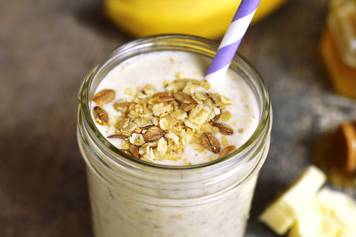 En god og mettende smoothie med havregryn som gir energi om morgenen. Friske jordbær og banan er en klassisk smakskombinasjon. Mandelmelk og yoghurt er gode kilder til omega-3 fettsyrer og har mye umettet fett. Tilsett lønnesirup for å gjøre den søtere.