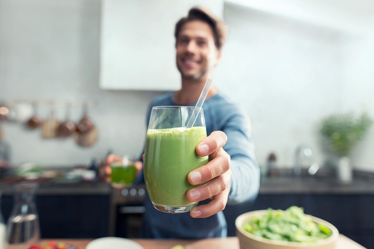 Hvis du vil tilsette mer næringsrike ingredienser i kosten, er ferske, hjemmelagde smoothies en fin måte å gjøre det på. Smoothies har en litt tykkere konsistens enn juice og inneholder litt mer fiber, siden man finknuser hele råvaren. Et tips er å mikse inn mer næringsrike grønnsaker som grønnkål eller spinat sammen med litt kokosmelk, yoghurt og noe som er litt søtere, for eksempel eple, honning eller bær, slik at du får en kremet, leskende og lekker drikk.
